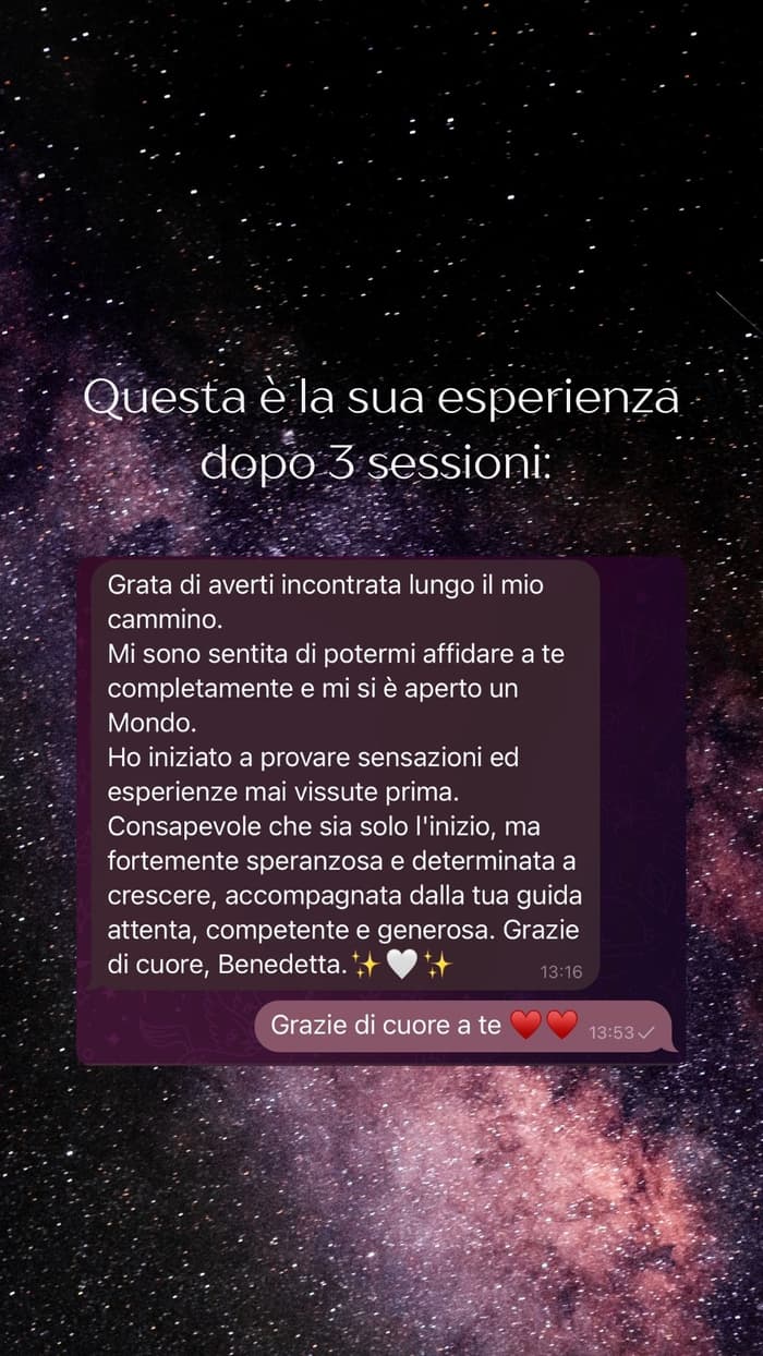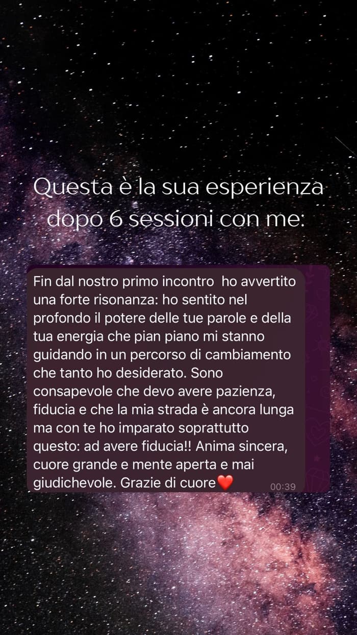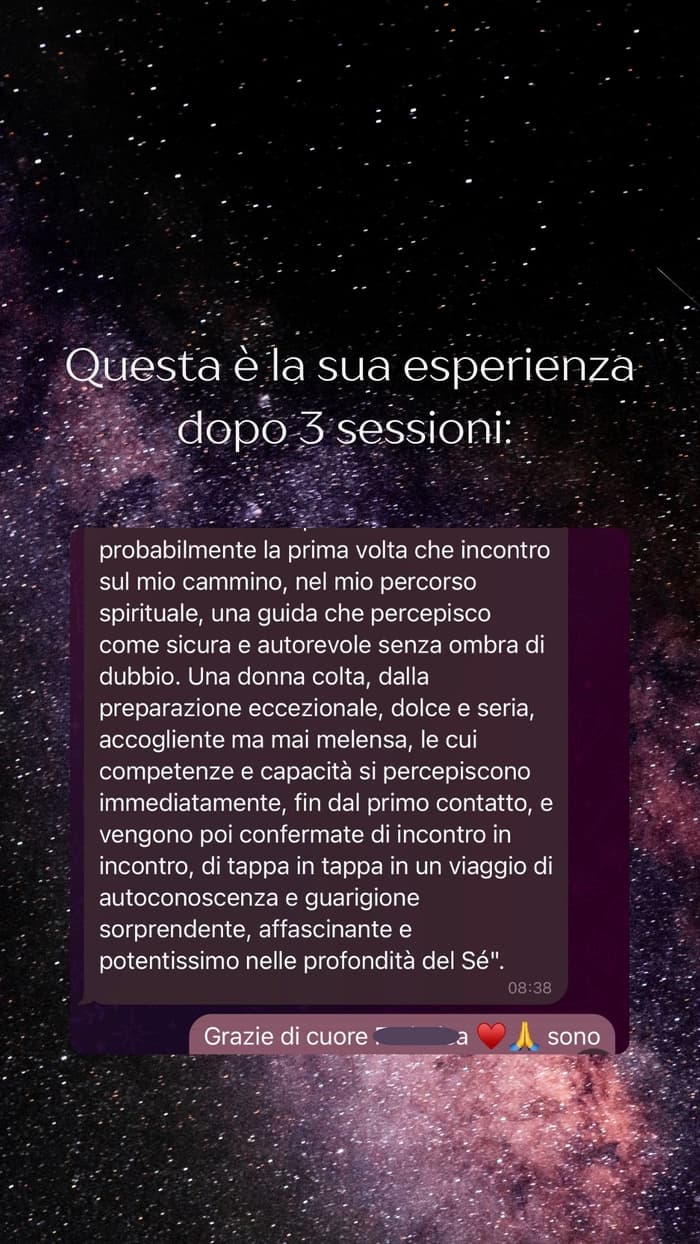 Sono laureata ad Oxford come Brennan Healing Science Practitioner (tecniche psicoenergetiche per la guarigione spirituale ed emozionale), numerologa certificata all'Accademia di Numerologia Sacra, Wabi Sabi Mentor (sciamanesimo giapponese), Moon Mother, studiosa di Sciamanesimo Ancestrale a Montpellier con Patricia WhiteBuffalo, del metodo Soma Breath (breathwork) di Niraj Naik e di Sciamanesimo Birmano e Nat (Antenati) con Selene Calloni Williams.