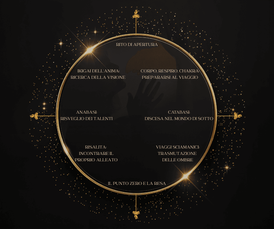 Un Viaggio Iniziatico avviene entro la dimensione del Rito, che apre, traccia e chiude il contenitore in cui la tua metamorfosi e rinascita avverranno.